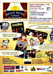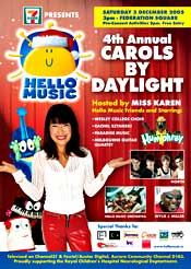 Fedration Square Christmas by day lite with Karen Kim and the Hello music crew